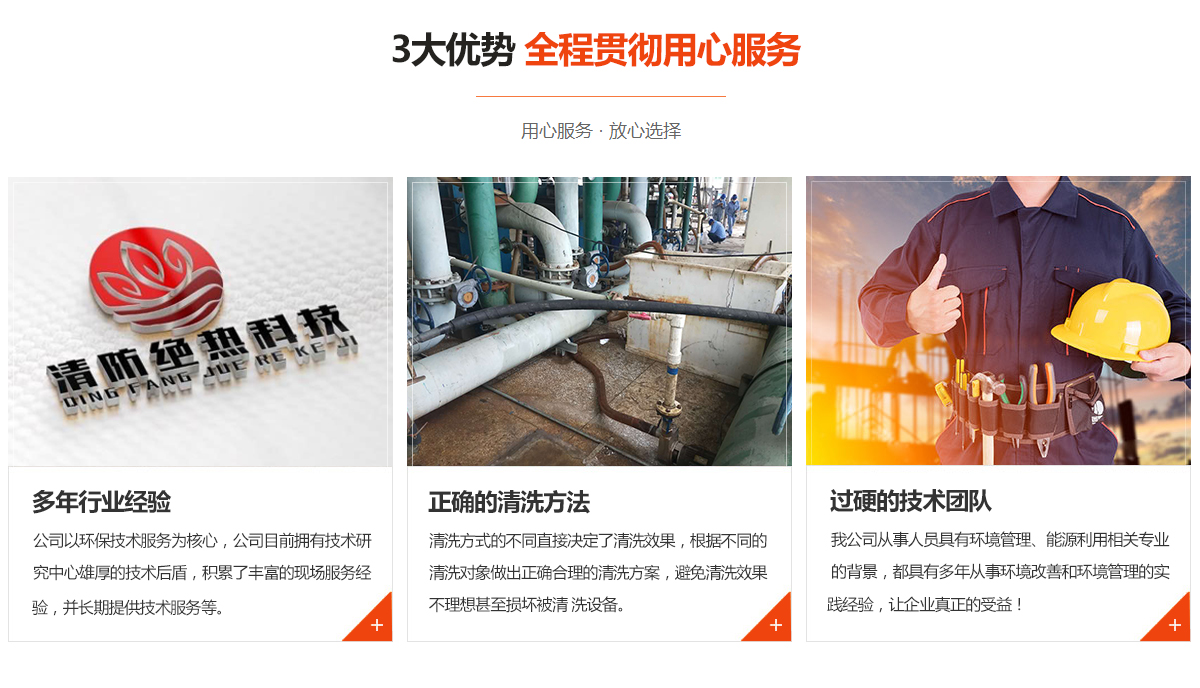 專業從事化學清洗、物理清洗各種型號換熱器、鍋爐、管線、維修,污水處理設施的修復、管理、經營、技術咨詢及配套服務;環境技術開發;防腐、保溫等領域的工程施工、技術咨詢等;目前主要合作單位以煤化工、發電廠、治煉廠為主;公司目前擁有技術研究中心雄厚的技術后盾,積累了豐富的現場服務經驗,并長期提供技術服務等。